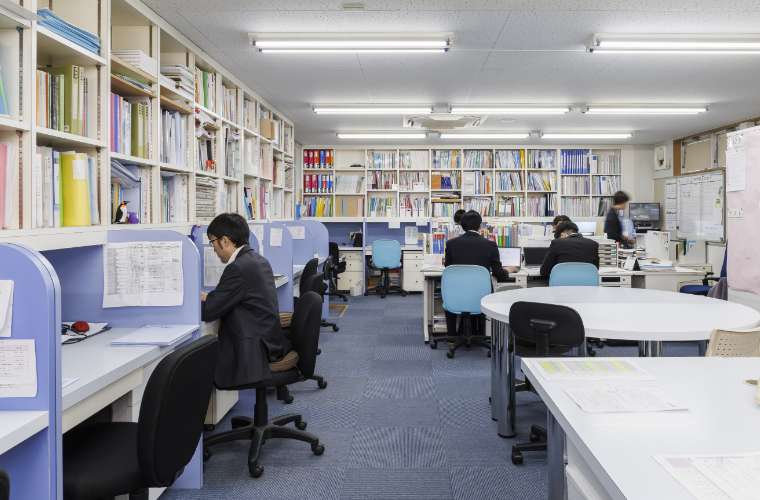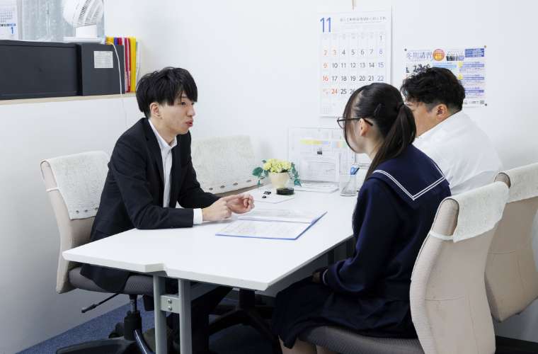 毎日、多くの生徒が質問や相談に訪れています。応接スペースでは入塾の説明や、面接等を行っています。