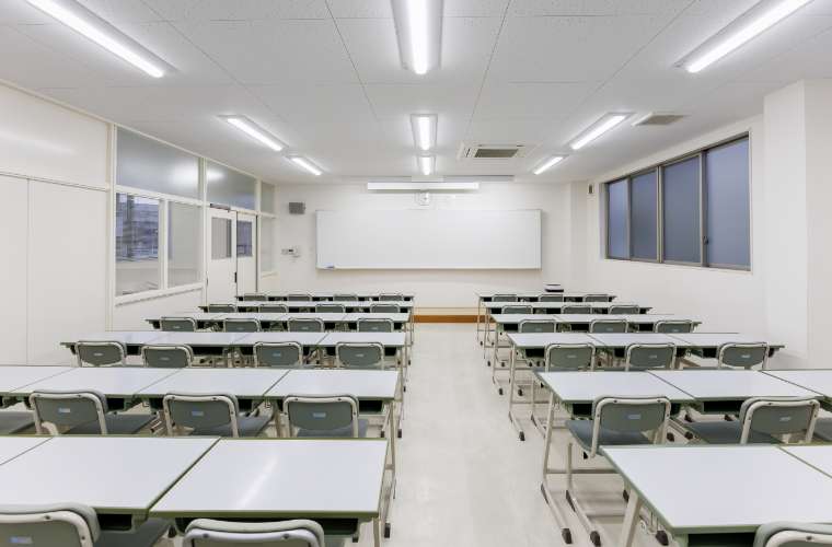 授業を行う教室の1つです。ホワイトボードを用いての熱い授業が毎日展開されています。